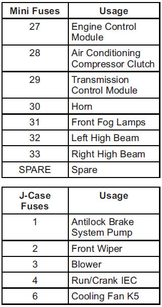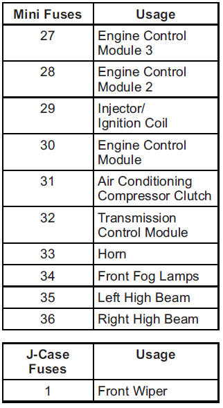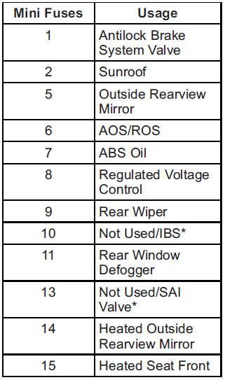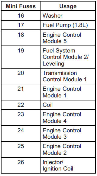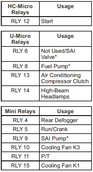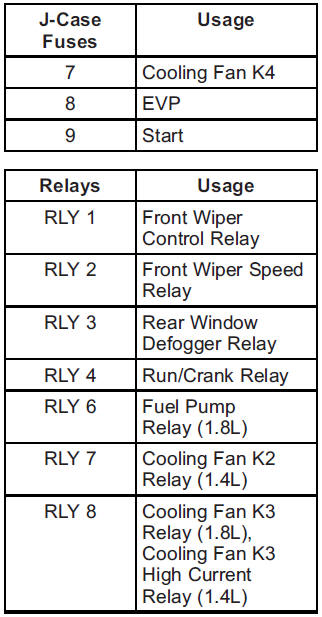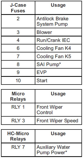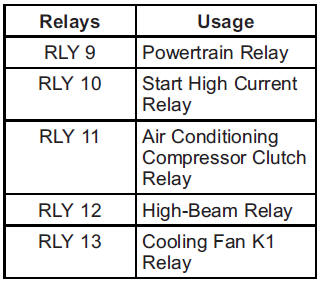 The vehicle may not be equipped with all of the fuses, relays, and features shown.