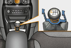 Raise the ring under the knob and push the gear lever to the left then forwards.