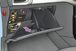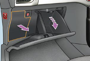 The extraction pliers and the spare fuse storage locations are fi tted to the back of the dashboard fusebox cover.