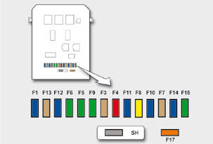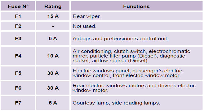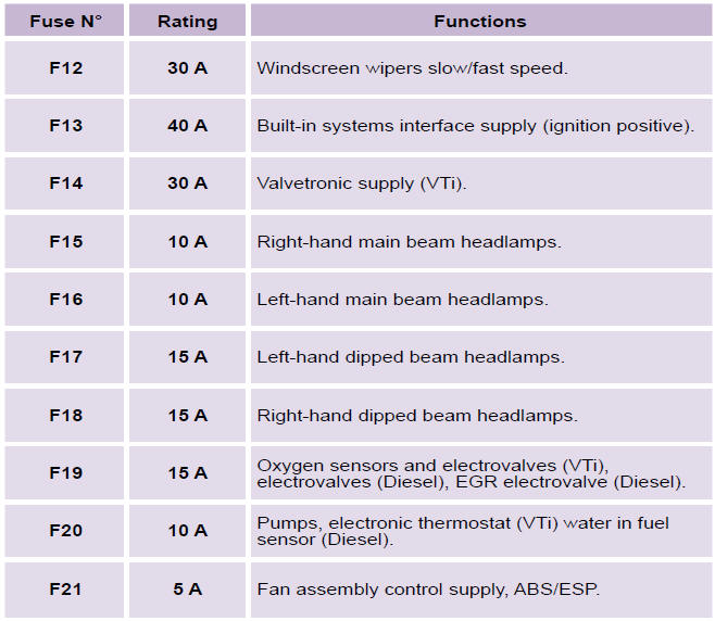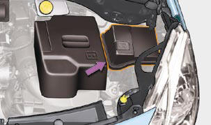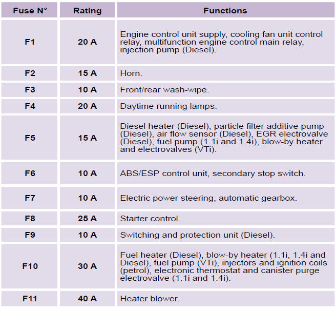 The fusebox is placed in the engine compartment near the battery (left-hand side).