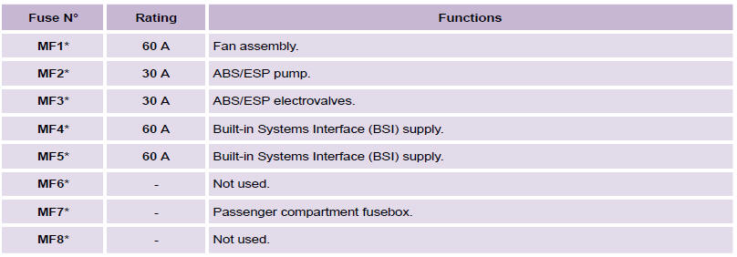 * The maxi-fuses provide additional protection for the electrical systems. All work on the maxi-fuses must be carried out by a CITROËN dealer.