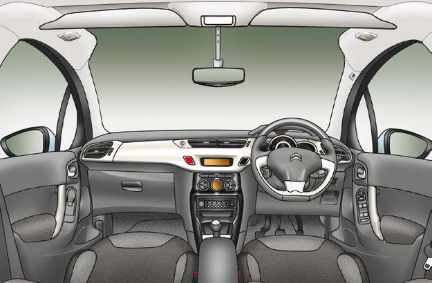 This subdued passenger compartment lighting improves visibilty inside the vehicle in low lighting conditions. It comprises 4 lamps, located in the automatic day/night mirror support, in the footwells and in the lower dashboard storage compartment.