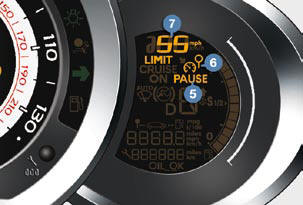 5. Speed limiter on/off indication 6. Speed limiter mode selection indication 7. Programmed speed value