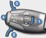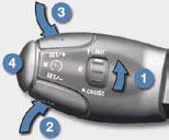 The cruise control is switched on manually: it requires a minimum vehicle speed of 25 mph (40 km/h), as well as the engagement of: