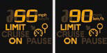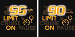 Set the speed value by pressing button 2 or 3 (e.g.: 55 mph (90 km/h)).