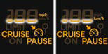 - by + or - 1 mph (km/h) = short press, - by + or - 5 mph (km/h) = long press, - in steps of + or - 5 mph (km/h) = maintained press.