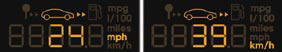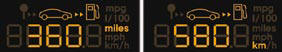 When the range falls below 20 miles (30 km), dashes are displayed. After fi lling with at least 5 litres of fuel, the range is recalculated and is displayed when it exceeds 60 miles (100 km).