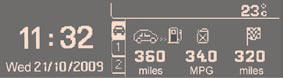 When the range falls below 20 miles (30 km), dashes are displayed. After fi lling with at least 5 litres of fuel, the range is recalculated and is displayed when it exceeds 60 miles (100 km).