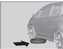 5. Place a wheel block or rock in front and rear of the wheel diagonal to the flat tire.