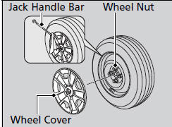 7. Put the flat tip of the jack handle bar into the edge of the wheel cover. Carefully pry the edge and remove the cover.