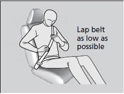 3. Position the lap part of the belt as low as possible across your hips, then pull up on the shoulder part of the belt so the lap part fits snugly. This lets your strong pelvic bones take the force of a crash and reduces the chance of internal injuries.
