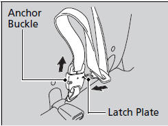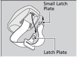 2. Line up the triangle marks on the small latch plate and anchor buckle. Make sure the seat belt is not twisted. Attach the belt to the anchor buckle.
