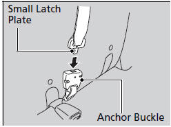To unlatch the detachable anchor, insert the latch plate into the slot on the side of the anchor buckle.