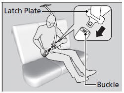 1. Pull out the seat belt’s small latch plate and the latch plate from each holding slot in the ceiling.