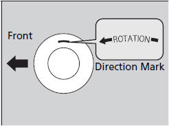 Directional tires should be mounted with the rotation indication mark facing forward, as shown below.
