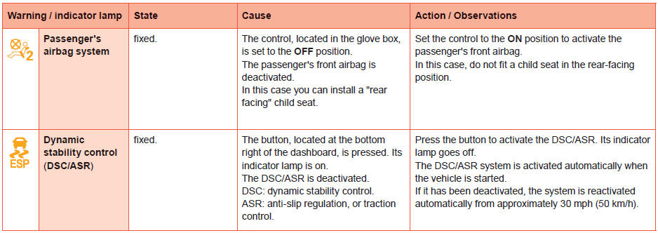If one of the following indicator lamps comes on, this confirms that the corresponding system has been switched off intentionally. This is may be accompanied by an audible signal and a message in the screen.