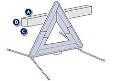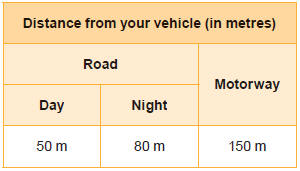 Place the triangle at a distance behind the vehicle, as shown in the table below, according to the type of road and the level of ambient light.