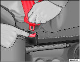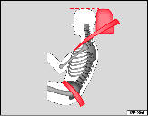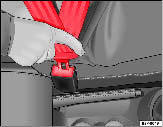 – Press the red button on the belt buckle ⇒ fig. 15. The latch plate is released