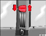The seat belt adjuster for the front seats can be used to adjust the proper belt position at the shoulder. – Press the upper part of the shoulder belt guide and hold it in this position ⇒ fig. 16. – Move the shoulder belt guide up or down until you have adjusted the seat belt to the correct position. – After adjusting, pull the shoulder belt sharply to check that the catch on the shoulder belt guide is engaged securely.
